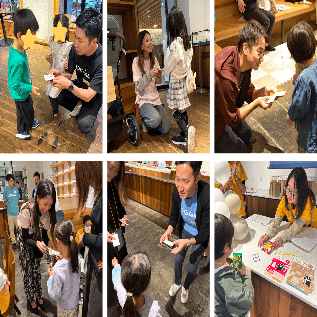 お子さまたちには、手作りの名刺と折り紙の名刺ケースを作成してもらい、3人のコンサルタントとの名刺交換にチャレンジ。交換できたら、お菓子のプレゼントをお渡ししました。