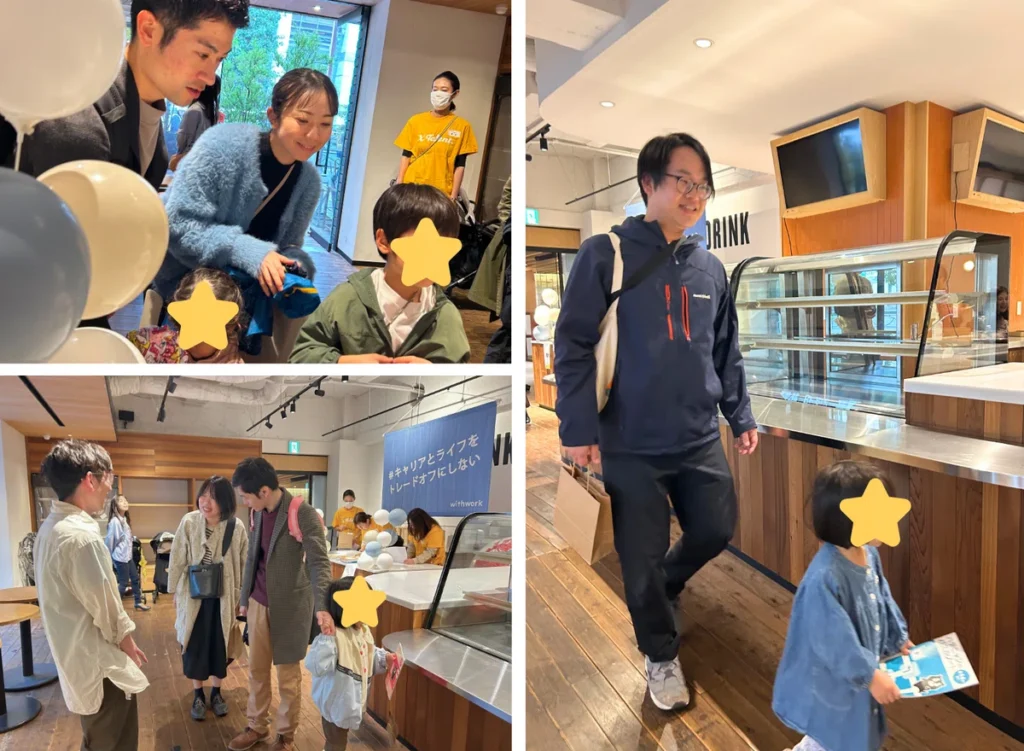 担当いただいたwithworkメンバーとゆっくりお話したかったので、4歳娘が夢中になれる塗り絵の用意やビーズブレスレット作り、ワンダーボックスのコーナーがとてもありがたかったです。おかげでゆっくりお話できました。また名刺交換体験も娘が頑張っている様子が見れ感激でした。また淹れたてコーヒーが嬉しかったです♡