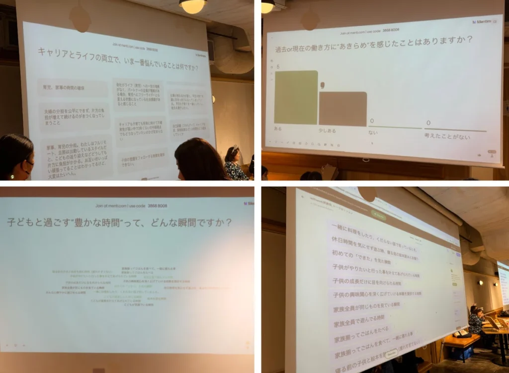 今回のトークセッションでは、Mentimeter(メンティメーター)という投票ツールを使用して、リアルタイムで参加者のみなさんからの声を拾いながら会を進めていきました。